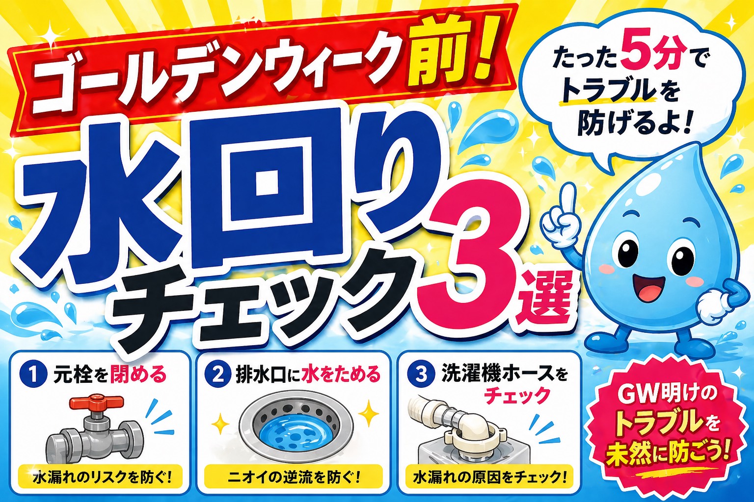ゴールデンウイーク前にやっとこ!水回りチェック3選!!!
